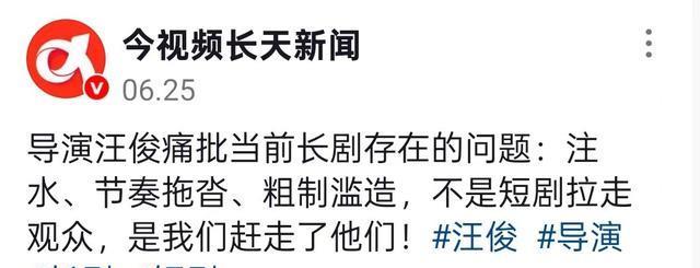 导演汪俊前段时间曾谈到如今的影视剧现象,痛批当前长剧存在的问题:注水、节奏拖沓、粗制滥造,不是短剧拉走观众,是我们赶走了他们!